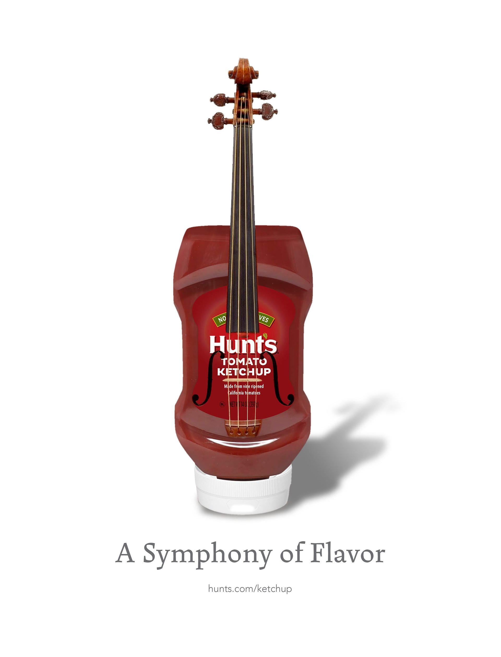 An ad series reimagining Hunt’s Ketchup bottles as musical instruments, blending food and rhythm to create a vibrant, unexpected take on a classic condiment.