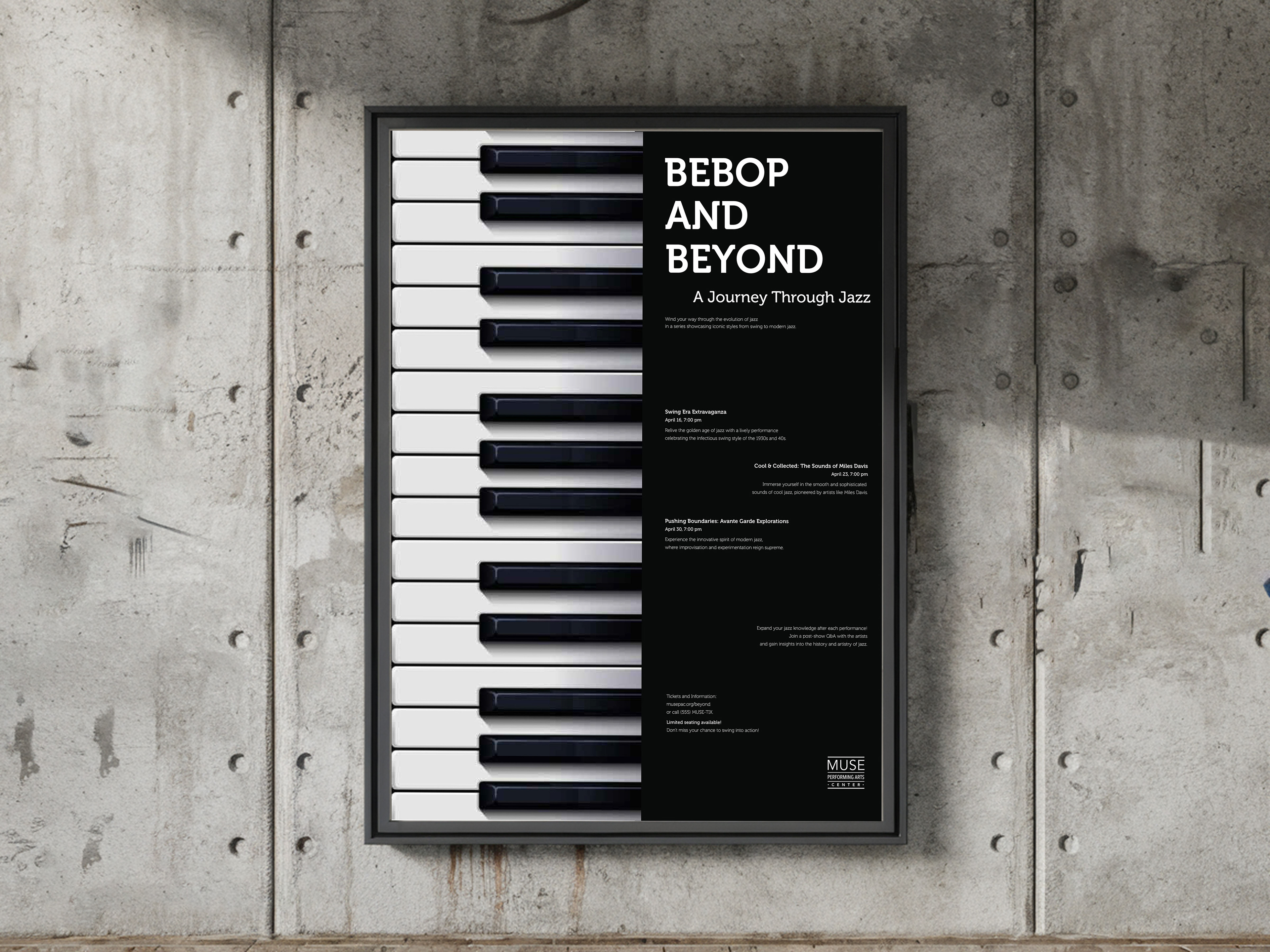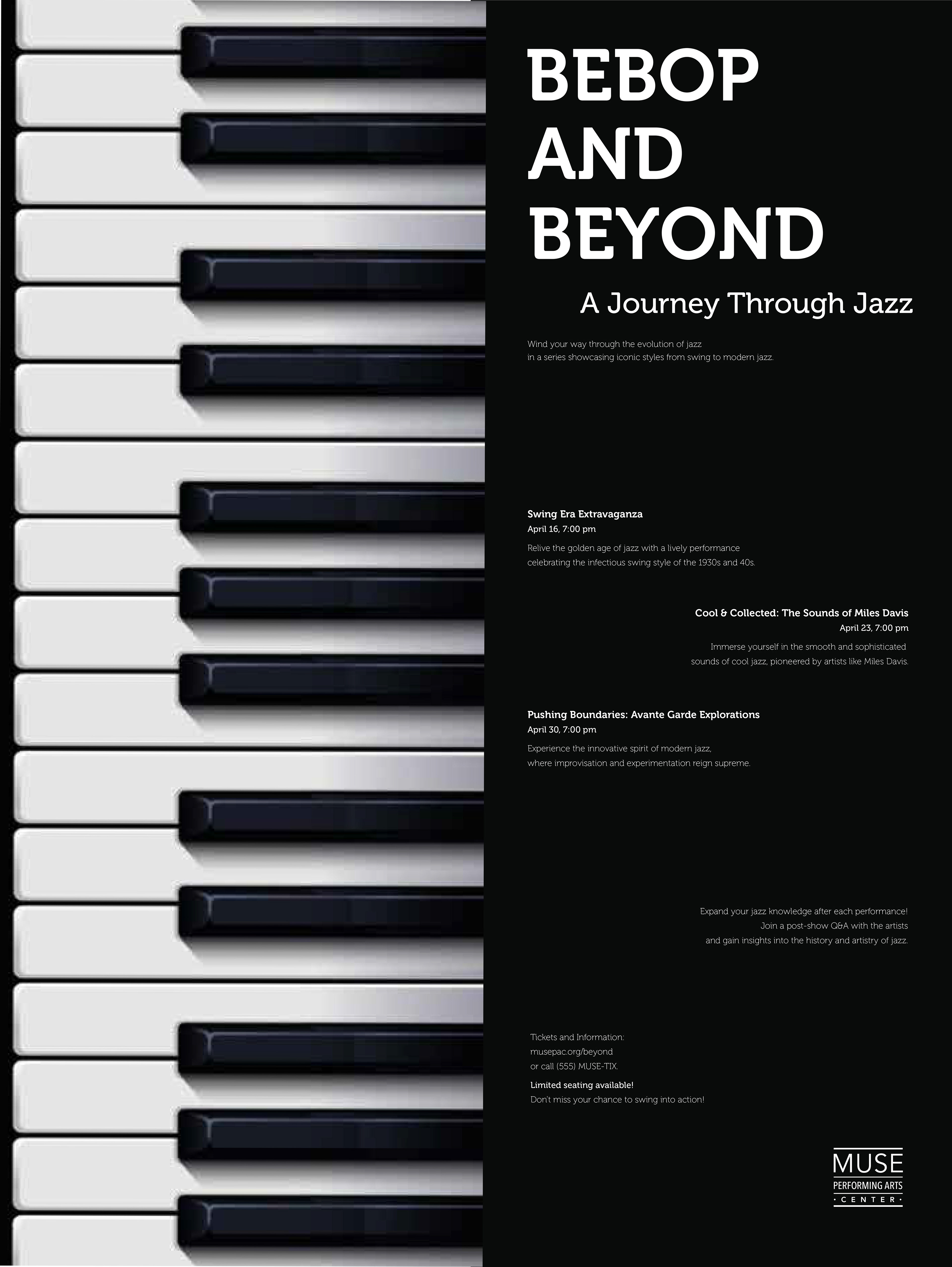Promotional designs for a jazz event titled "Bebop and Beyond"